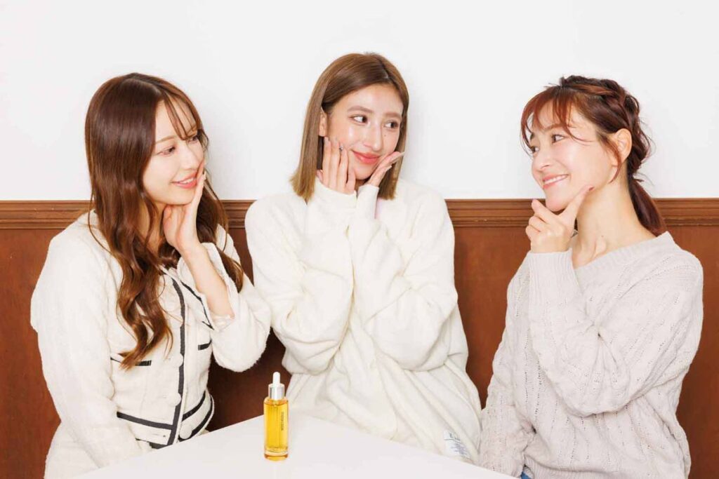 りりさん(以下、リ) 私も! 一度使ったらやめられなくなるよね。私は肌の調子が悪くなると使うようにしているの。あまりオイリーなとろみがあるオイル美容液って苦手だったのだけど、「はりつや美容液」はさらっとした感触ですごく心地いいの。