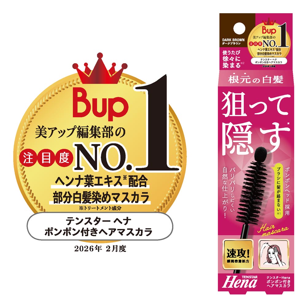 『テンスターHena ポンポン付きヘアマスカラ』っていう、新しいタイプの白髪ケアアイテムだよ!
