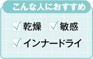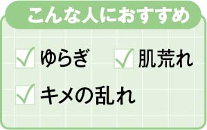 潤い不足の肌にたっぷりと水分を与え、滑らかな肌へと導く。